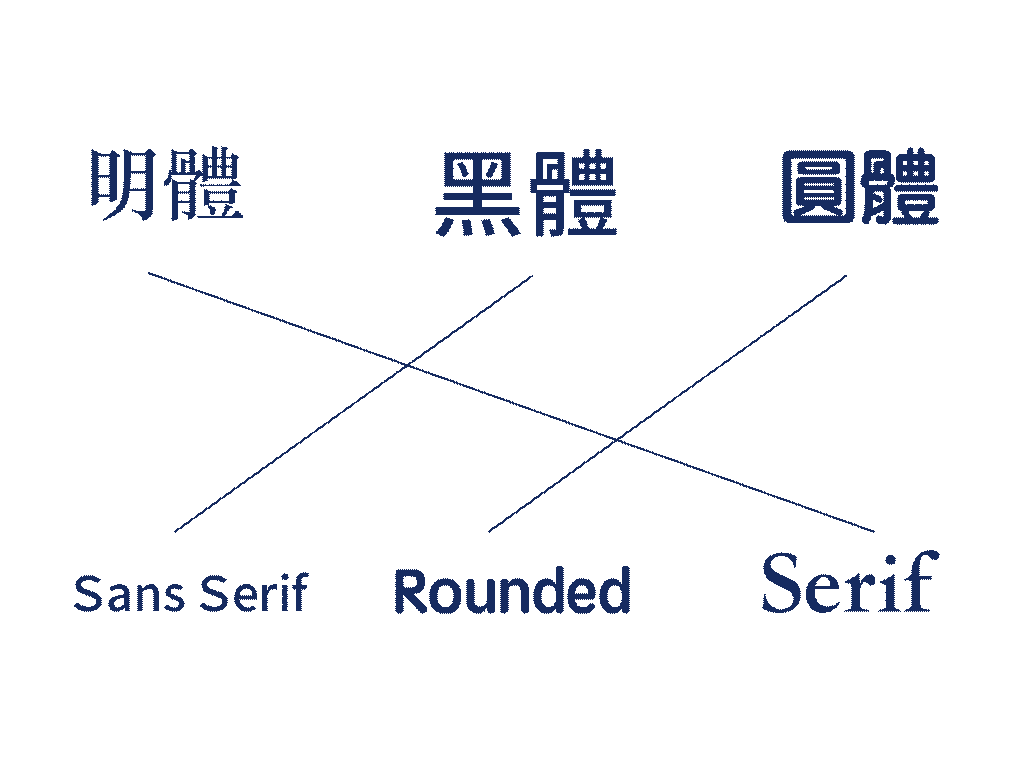 這就是許多讀者都已經(jīng)有的認知:明體搭配襯線體(Serif),黑體搭配無襯線體(Sans Serif),圓體搭配Rounded。這就是基本款,再怎樣都不至于出錯。但如果讀者覺得膩了,想來點變化,還有更進階的搭配。