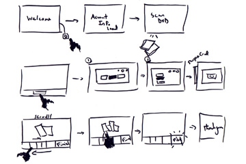 最早大家開(kāi)始討論用戶體驗(yàn)流程,在白板上邊畫(huà)流程邊添加粗略的UI元素。會(huì)后交互設(shè)計(jì)師會(huì)在在紙上做手繪版線框圖。這階段產(chǎn)品經(jīng)理、交互設(shè)計(jì)師、UI設(shè)計(jì)師、包括技術(shù)工程師會(huì)一同作大量的討論,而且主要討論的是流程和主要功能,因此手畫(huà)故事版最快最方便并易于修改的。