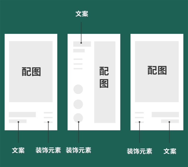 如圖所示,這三種構(gòu)圖形式看似簡(jiǎn)單,實(shí)則兼顧了手機(jī)端的很多必要點(diǎn),比如:視覺的流暢度、整潔度、辨識(shí)度、用戶的接受度等等,詳情頁(yè)設(shè)計(jì)在構(gòu)圖及版式方面并不需要很復(fù)雜,反而干凈整齊的畫面更易于視覺表達(dá),也更利于手機(jī)端展示。