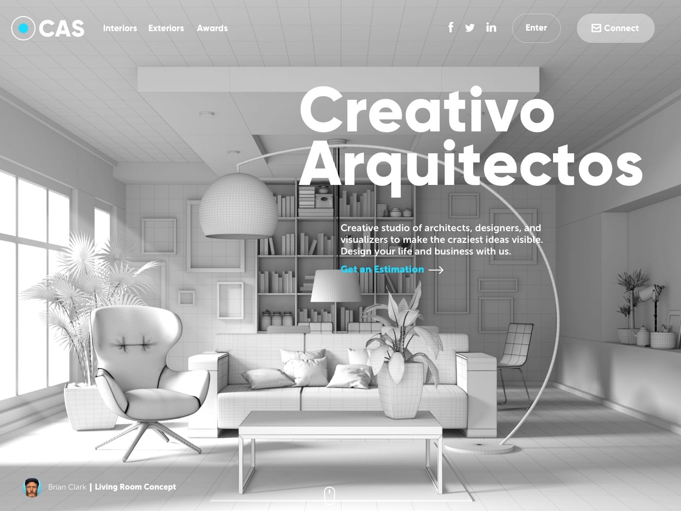 形體和色彩,到底哪個在設計中更加富有表現(xiàn)力?這個問題可能沒有一個固定答案,這場在戰(zhàn)爭在設計領域當中已經持續(xù)多年,甚至會一直持續(xù)下去。這個設計項目是為一個室內設計工作室來設計官方網站,他們的主要業(yè)務是制作可視化的室內設計渲染圖。他們熟知如何最大限度地借助設計工具來呈現(xiàn)室內設計的效果,在接到需求之后,我們決定使用全屏背景結合他們最擅長的3D建模,來展現(xiàn)高質量的室內設計能力和建模渲染效果。