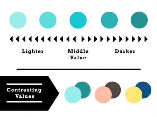 值(英: Value)是指,色彩的亮度或者暗度的表示用語(yǔ)。使用白色和黑色,可以做成無(wú)數(shù)的對(duì)比值(英: Contrasting Value)。但是,當(dāng)作成對(duì)比度強(qiáng)的設(shè)計(jì)時(shí),也就沒(méi)有必要使用黑色和白色了。通過(guò)調(diào)整色彩的明暗度來(lái)增強(qiáng)對(duì)比使設(shè)計(jì)中的一部分變得可見(jiàn)是最簡(jiǎn)單的技術(shù)之一。
