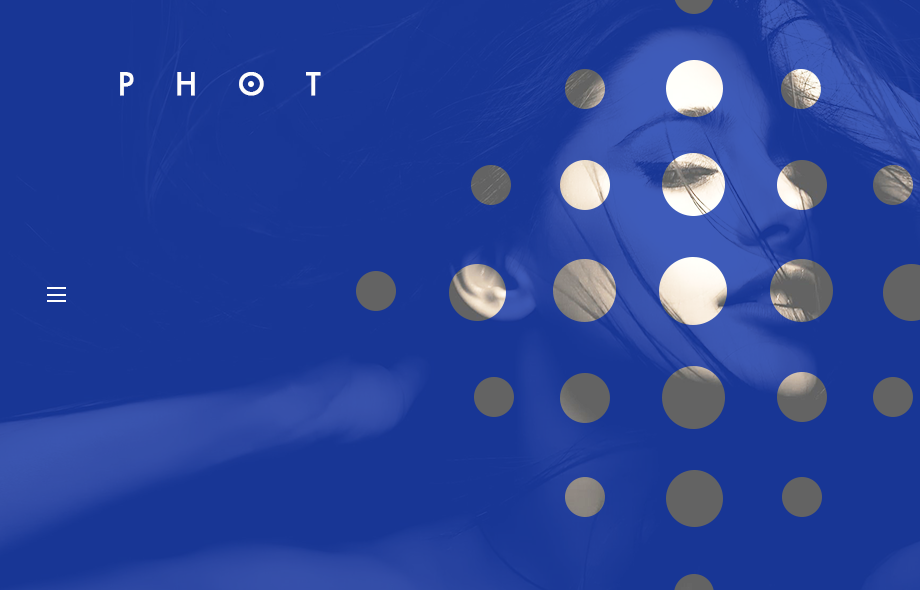 添加上LOGO和漢堡包菜單圖標。顯然這個作品網(wǎng)站是極簡風格,因此導(dǎo)航隱藏起來可以減少頁面的干擾。用戶的視覺首先會被右側(cè)的這種隱約其中的效果所吸引,再關(guān)注到LOGO、菜單等。這是我們所安排的用戶的視覺流。