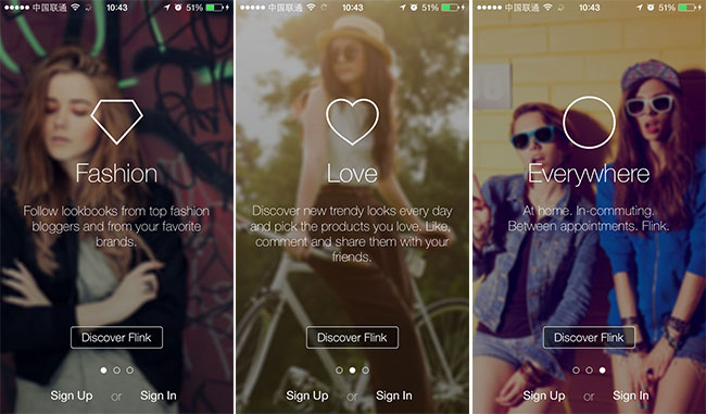 來看這些產品The Whole Pantry / Flink / VSCO Cam,他們都有一些共同的特點,提升視覺表現(xiàn)力度,豐富情感化元素。一些信息或操作,浮動在圖片上。這種設計方法,對字體和排版設計要求更高,難度也更多,但極容易渲染出氛圍。
