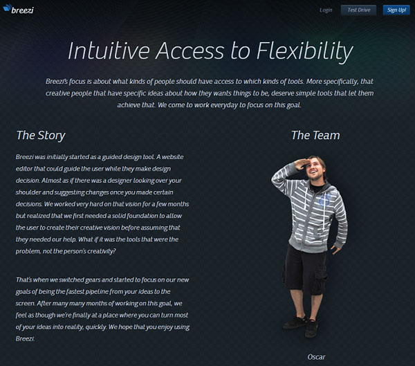 也許這不是一個嚴格意義上的團隊展示頁面,但是這個頁面本身的建設(shè)理念是很值得借鑒的,可以去 Bestaboutpages.com瀏覽更多案例。