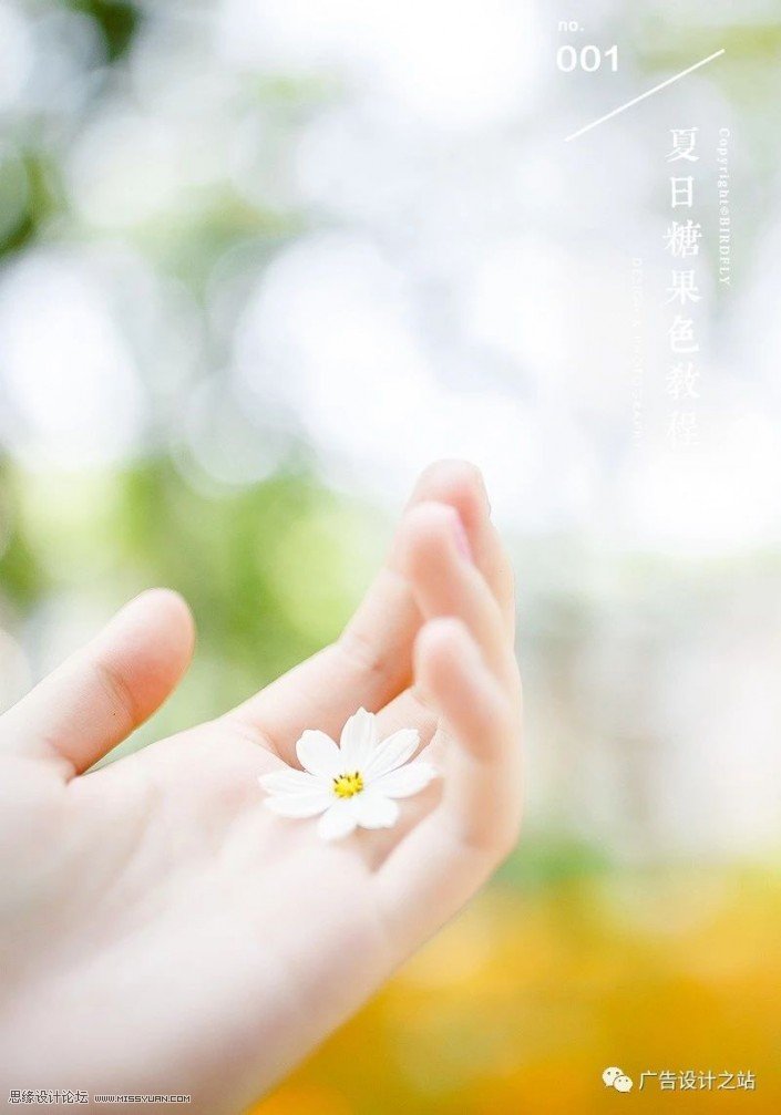 這張照片是在中午前后拍的,那會(huì)兒的陽(yáng)光已經(jīng)很強(qiáng),光從后面的樹(shù)影里透過(guò)來(lái),我使用了大光圈將后面背景虛化,讓觀眾的視線集中在少女的手和小白花朵上。原圖背景明顯偏暗,整體色調(diào)偏深,沒(méi)有夏日的感覺(jué)。接下來(lái)我們就要使用Lightroom和Photoshop讓這張照片蛻變: