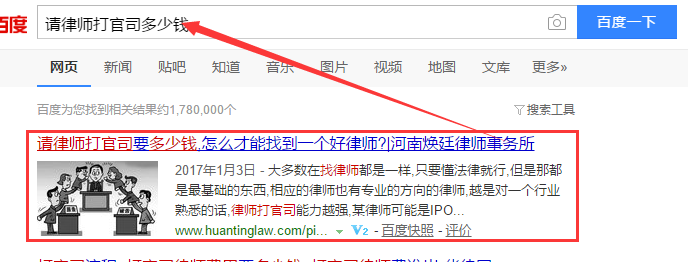 例如一些長尾詞的快速排名,僅僅一個請律師打官司多少錢就可以上第一名。這就是長尾詞的做引流的好處之一,但是這個也是原創(chuàng)性文章的好處。
